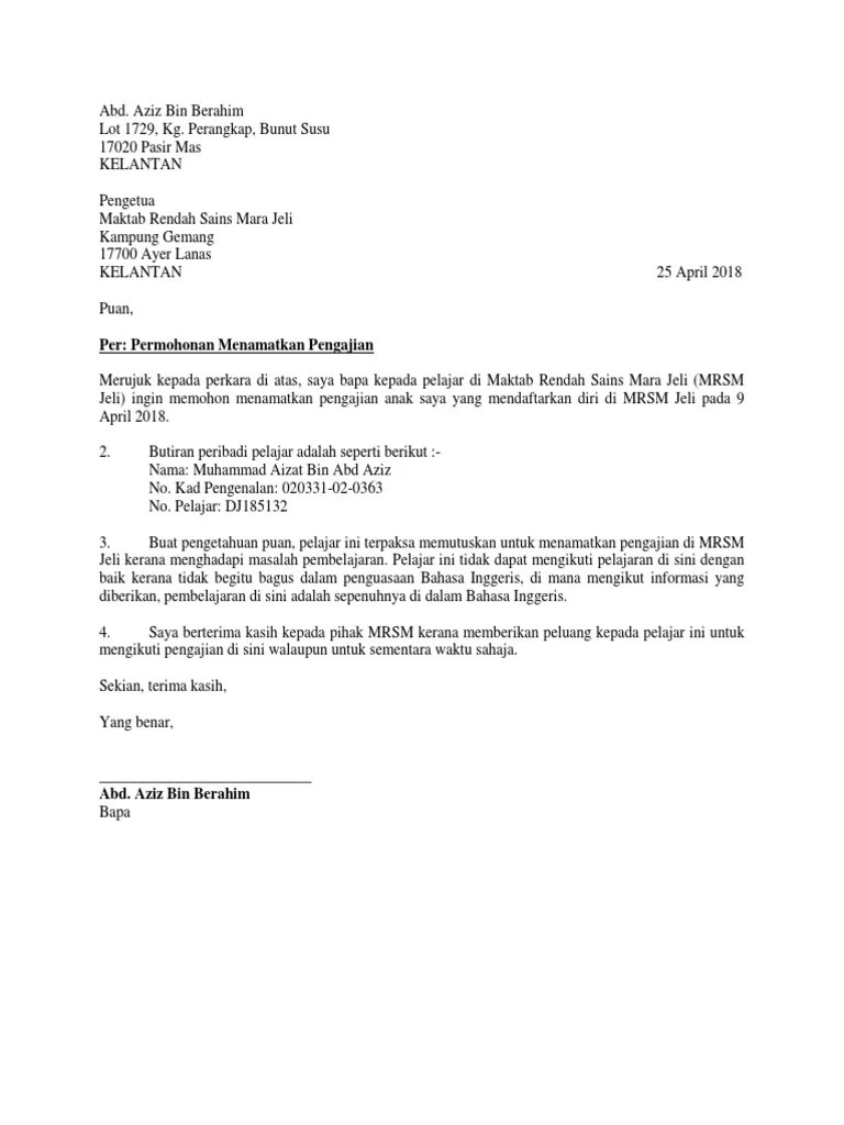 Contoh Surat Berhenti Sekolah Rendah : Contoh Surat Berhenti Sekolah Tahfiz Speedoqws